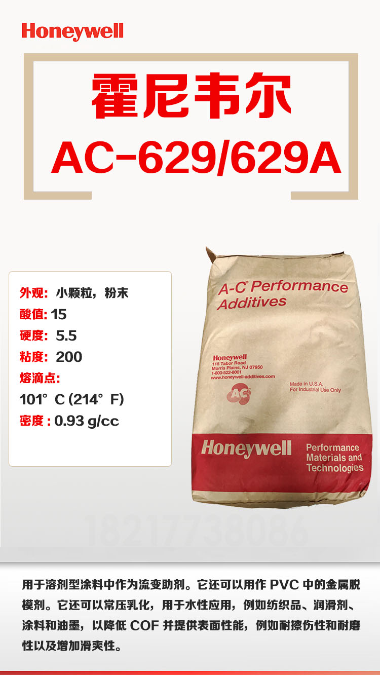• Honeywell 霍尼韋爾氧化聚乙烯蠟A-C629A蠟粉 物性表, Honeywell 霍尼韋爾氧化聚乙烯蠟A-C629A蠟粉 產品參數,Honeywell 霍尼韋爾氧化聚乙烯蠟A-C629A蠟粉 性能表,Honeywell 霍尼韋爾氧化聚乙烯蠟A-C629A蠟粉 出廠報告, MSDS,, 物質安全資料表, UL黃卡,{ SGS報告, RoHS, 食品級認證, NSF飲用水標準, 產品資料, 產品性能, 出廠報告, 原廠原包, 代理商, 熱變形溫度, 熔指數, 流動系數, 抗沖擊性能、沖擊強度, 低溫韌性、低溫抗沖擊性能, 熔體流動系數、熔體流動速率, 加工工藝、加工參數、加工溫度, 歐盟RoHS 德國FDA 美國FDA 日本FDA